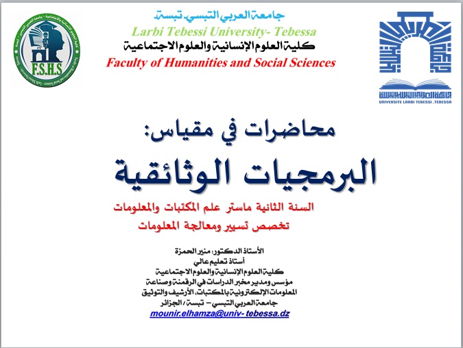 تهدف هذه المحاضرات إلى تمكين الطلبة من إنتاج وثائق إدارية احترافية تخدم حاجات المؤسسات والمكتبات ومراكز المعلومات