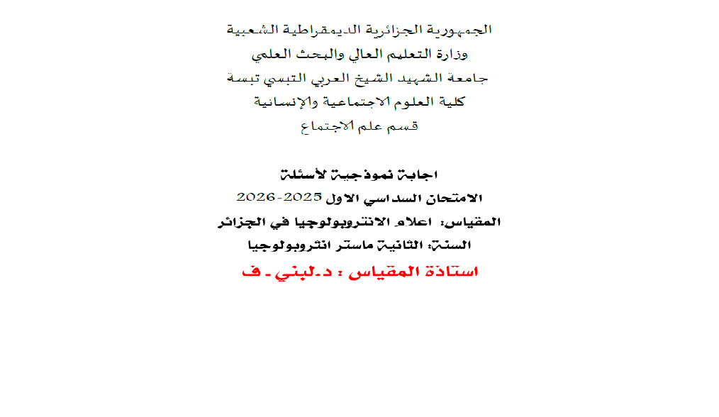 المقياس:  اعلام الانتروبولوجيا في الجزائر