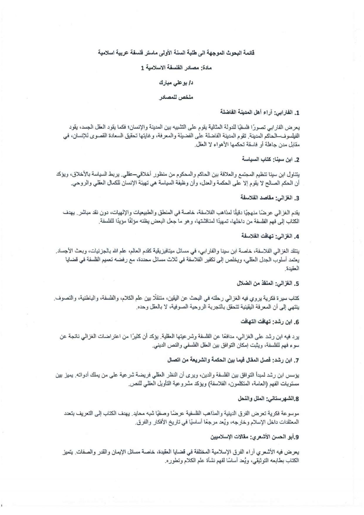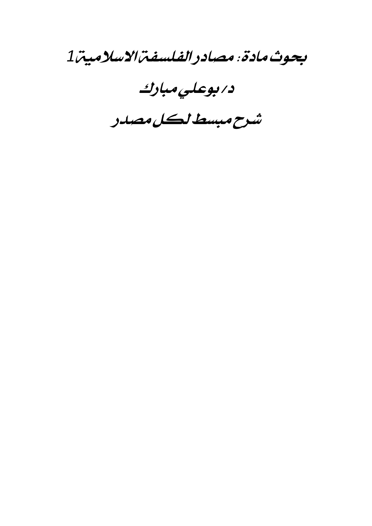 ملخص بحوث مصادر الفلسفة الاسلامية1 السنة الاولى ماستر فلسفة عربية اسلامية