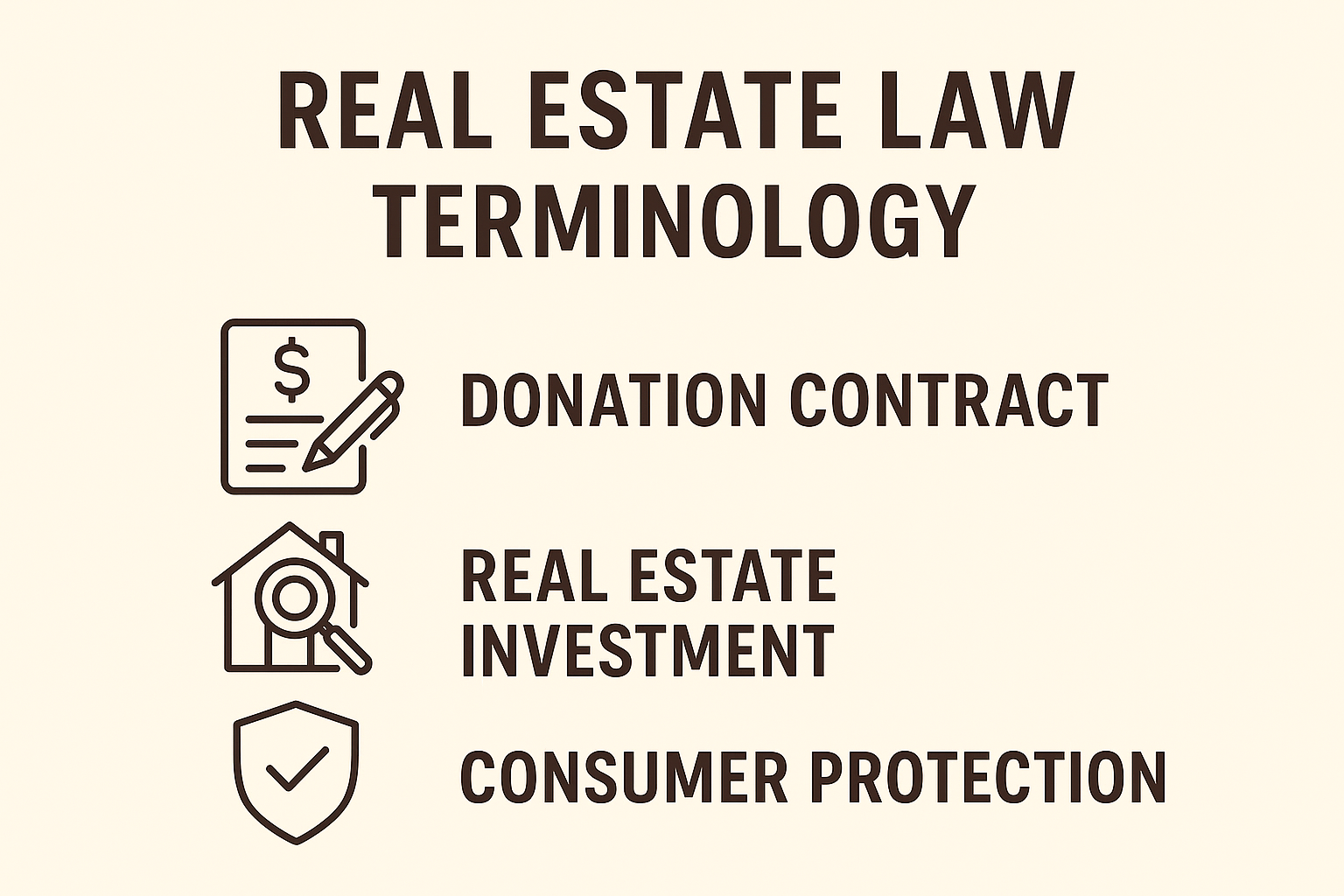 This lecture aims to help students understand and use the main terminology of real estate law. It focuses on key legal concepts related to donation contracts, real estate investment, and consumer protection. Through examples and case references, students will learn the meaning and practical use of essential terms describing property transfer, investment procedures, and legal guarantees for consumers in real estate transactions.