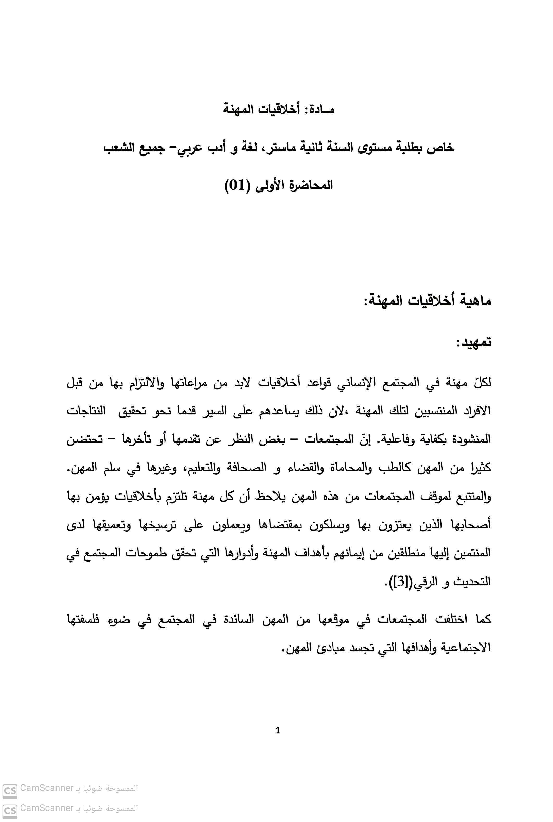محاضرات في أخلاقيات المهنة