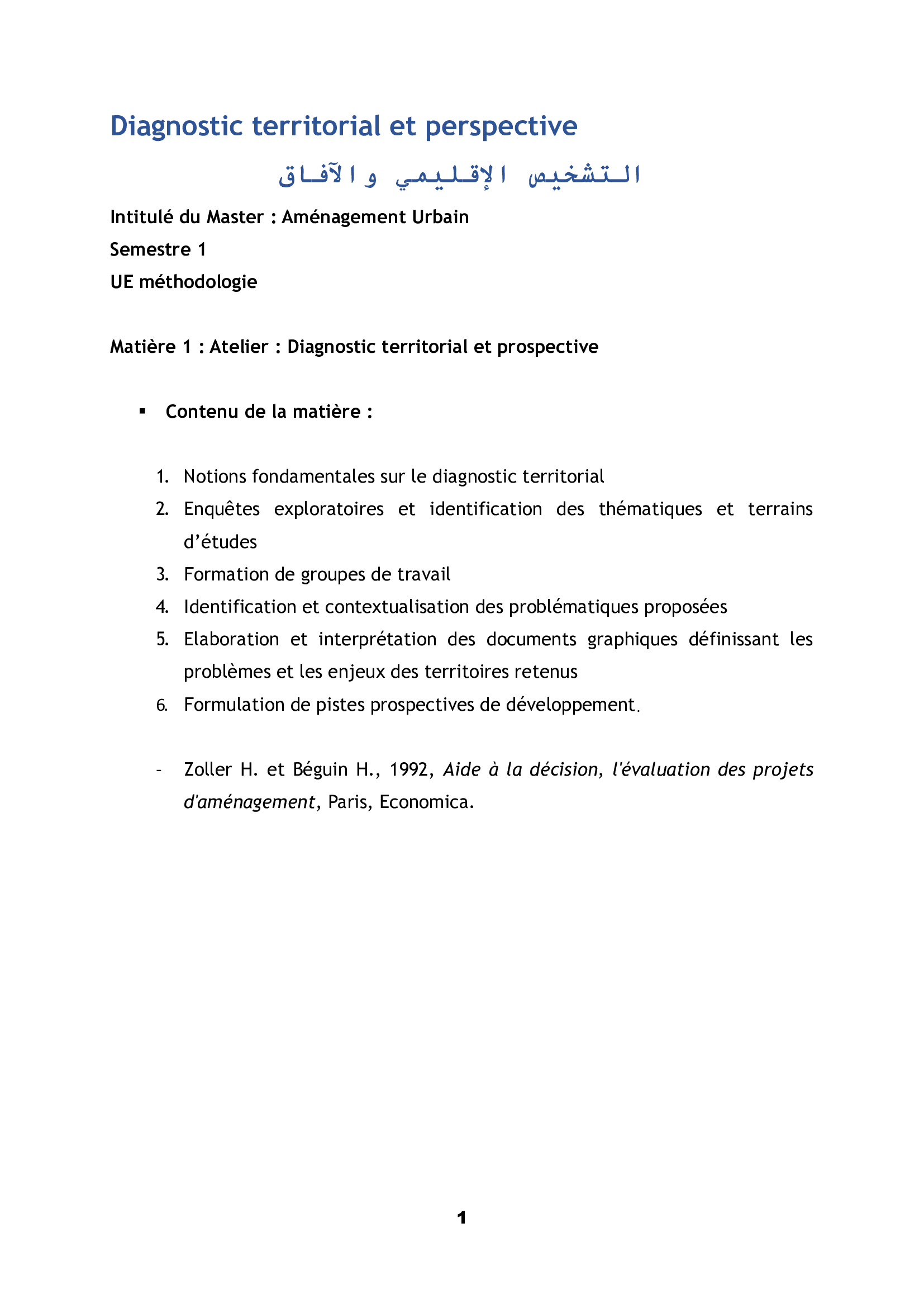 C’est un travail personnel qui émane de ma propre expérience lors de mes activités pédagogiques de la matière 1 : atelier : diagnostic territorial et prospective.