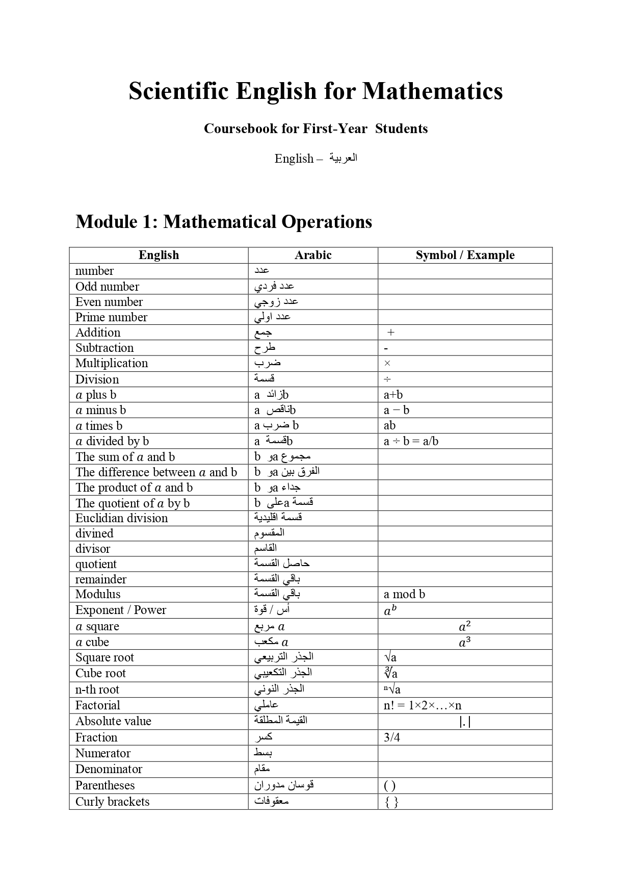 Sciences exactes et sciences de la nature et de la vie .....................................................................العلوم الدقيقة وعلوم الطبيعة والحياة