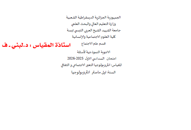 الاجوبة النموذجية  لأسئلة امتحان انثروبولوجيا التغير الاجتماعي و الثقافي